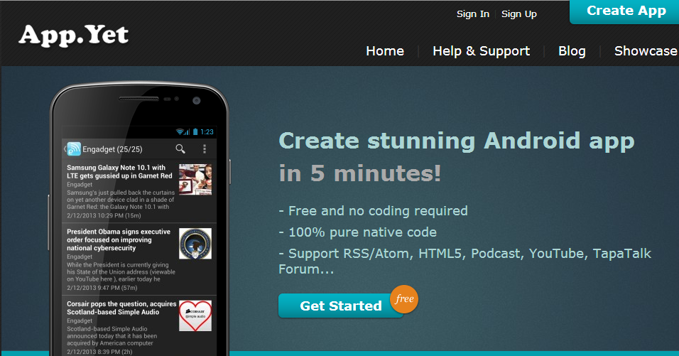Menggunakan AppYet, siapa pun dapat membuat aplikasi Android profesional. Tidak ada pengetahuan pemrograman diperlukan, hanya mengambil beberapa menit untuk membangun aplikasi pertama Anda. Yang Anda butuhkan adalah untuk memberikan link ke Rss / Atom feed atau situs web, mereka secara otomatis dikonversi menjadi 100% aplikasi asli murni menakjubkan untuk Android. Anda memiliki kebebasan untuk daftar / menjual aplikasi di Google Play dan banyak Pasar Android lainnya. Dapatkan uang dengan Ad Ad diembed atau mendapatkan ribuan instalasi membawa pengunjung konstan baru ke website Anda.